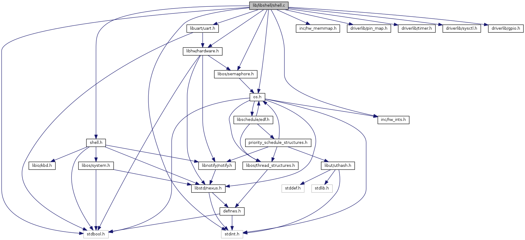 #include "shell.h"#include "libuart/uart.h"#include "libhw/hardware.h"#include "libos/semaphore.h"#include "libos/os.h"#include "inc/hw_memmap.h"#include "inc/hw_ints.h"#include <stdint.h>#include <stdbool.h>#include "driverlib/pin_map.h"#include "driverlib/timer.h"#include "driverlib/sysctl.h"#include "driverlib/gpio.h"